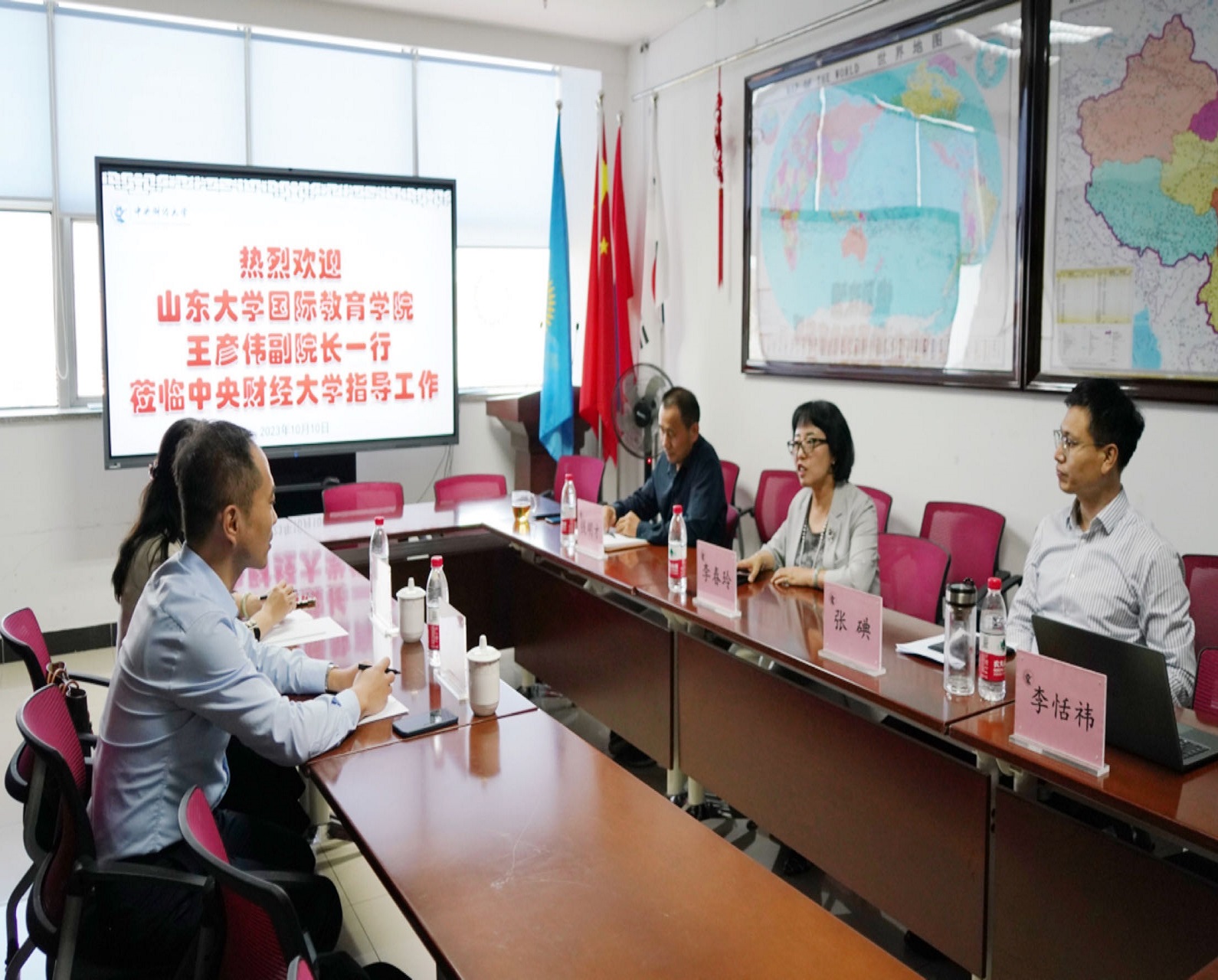 10月10日下午,山东大学国际教育学院副院长王彦伟,拓展办公室主任胡乃麟一行来学院调研访问。调研会在中财大厦1032会议室举行。调研会由新葡萄88805官网院长、留学生工作办公室主任李春玲主持,新葡萄88805官网副院长张碘和留学生招生办公室主任钱明才等参加了本次会议。