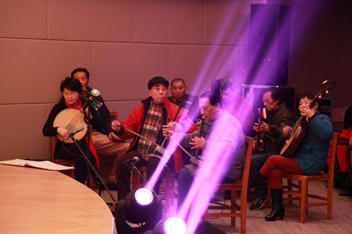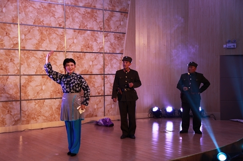 来自九江京剧票友除了前面的合奏外,还分别为孙艳琴演唱的《状元媒》、陶晋反串的《霸王别姬》、杨子越演唱的《贵妃醉酒》,以及吕莉、曾荣群、徐昌瑞演唱的《沙家浜》伴奏,其后还和必赢艺术学院民乐队为一位资深票友演唱的现代京剧《智取威虎山》选段《誓把反动派一扫光》伴奏,给晚会带来了一个又一个小惊喜。