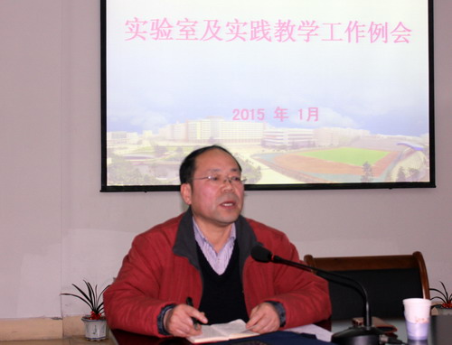 会上,纪副校长首先对有关职能部门和各二级学院加强实验室管理及实践教学工作所取得成绩予以肯定,对为实践教学和实验室建设和管理工作付出辛勤劳动的干部和教师表示感谢。并强调了本科毕业论文工作的重要性,要求各二级学院重视本科毕业论文工作,确保符合本专业人才培养和省学位办通知的要求。纪副校长对期末及下学期初的工作提了三点要求:一是做好本年度实践教学和实验场所及仪器管理等工作总结,对实践教学完成情况和实验设备(耗材)使用情况进行统计,推广好的做法,树立好的典型,解决存在的问题与困难,特别是做好设备的维修保障工作,对完成下学期实践教学任务心中有数。二是强化实验室建设与管理工作,科学规划,严谨论证,规范建设,严格管理。实验室建设要按照新招标采购的流程规划时间周期,确保设备按时到位。三是期末实验场所安全和实验设备状态检查。重点围绕有毒、有腐蚀、易燃、易爆等危险品、易盗物品和实验场所,进行全面检查,消除安全隐患,放假期间及时关好门窗,清楚走廊杂物,安排好假日值班,做好防火、防盗、防事故,对下学期不能正常使用的仪器设备,假期及时维修。纪副校长希望实验中心做好实践教学和实验室建设与管理等常态化工作,做到心中有数。