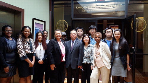 4月12日-14日,校长甘筱青携汉语国际推广办公室余启华副主任访问了美国萨凡纳州立大学及孔子学院。