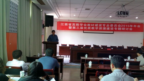 4月29日,江西省高教学会教材建设专业委员会2015年年会暨第三届优质教学资源建设专题研讨会必赢濂溪宾馆二楼会议室召开。江西省各高校负责教材管理工作的教务处领导和教材科科长等80余人参加了本次会议。必赢副校长陶春元出席大会并致辞。江西省教育厅高教处副处长罗红卫参加了会议。