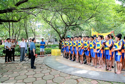 6月19日下午2时58分,学校两支龙舟队来到浔阳城美丽的南门湖畔,举行庆端午龙舟表演活动。队员们身着整齐的比赛服,个个精神抖擞,做好了赛前的各项准备工作。甘筱青校长出席活动并作讲话,副校长陶春元,宣传部、体育学院、八里湖校区管理办公室负责人,以及教练员、媒体记者和部分市民参加了活动。