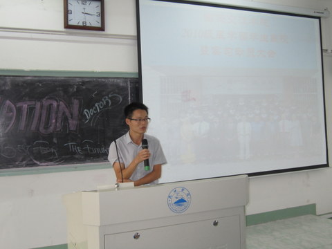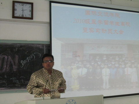 6月26日下午,国际交流学院在竞秀楼举行了国际交流学院2010级医学专业留学生离校暨实习动员大会,杨耀防副校长出席了会议并讲话,国际交流学院全体人员、任课教师和全体留学生参加了会议。