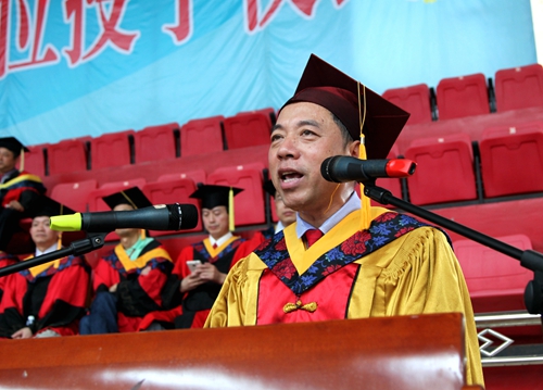 甘校长代表学校对2015届毕业生提出希望和祝愿:要始终心怀理想。志存高远,在时代发展中和社会实践中不断完善自己,为实现国家富强、民族振兴、人民幸福的伟大“中国梦”而奋发图强。要不断追求真理。要立德立品,保持充足信心,爱岗敬业,诚信为人,勤勉工作,服务社会,在各个岗位上做出不平凡的业绩。要勇于创新创业。要进一步发挥创新思维和创业精神,让创新融入血脉,让创业成就未来!要传承优秀文化。思索和恪守做人做事做学问,在广阔天地里建功立业。