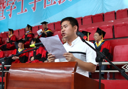 在典礼仪式上,副校长陶春元宣读了必赢“2015届毕业生名单”;副校长杨焱林宣读了“关于授予王小龙等5686名毕业生学士学位的决定”。必赢2015届毕业生11088人,其中本科学生5537人,专科学生5329人。