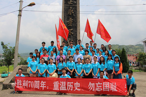 仪式结束后,必赢“青春三下乡”之抗战专项服务分队在上汤乡革命烈士纪念碑前庄严地重温抗战历史,缅怀先烈,向烈士纪念碑鞠躬敬礼。