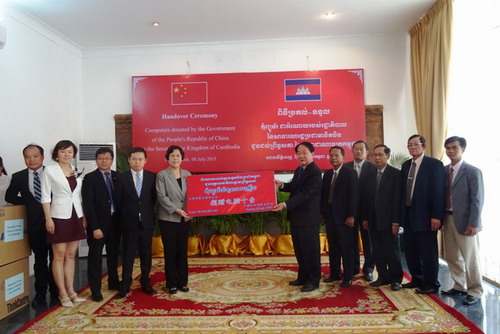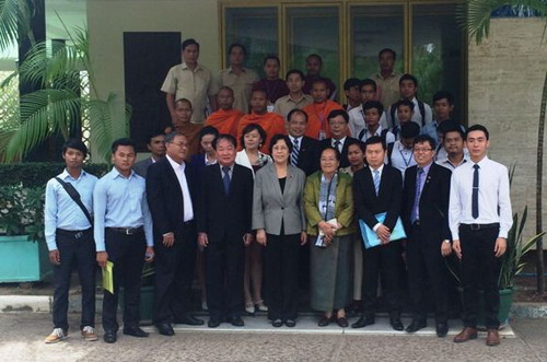 座谈会之前,翁萨勒秘书长率参议院秘书局的官员的在参议院小会议室为布建国大使举行了简短的欢迎仪式。双方就深化中国驻柬大使馆和柬埔寨参议院秘书局的合作与交流交换了意见,双方一致同意通过孔子学院这个桥梁,为参议院官员提供更多去中国交流、学习的机会。布建国大使还向参议院赠送了10套联想电脑用作参议院图书馆电子阅览使用。
