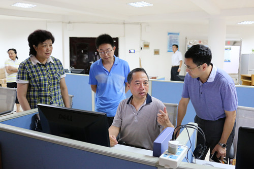 7月18日上午,在招生录取工作进行得如火如荼之际,校长甘筱青,副校长吴桃娥来到信息技术中心远程网录取现场及二号行政楼招生与就业处招生咨询中心、就业创业指导服务中心,看望慰问了招生与就业处暑期仍坚守在工作岗位上的工作人员。