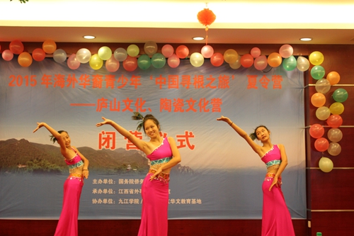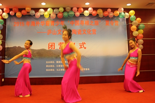 7月30日下午,由国务院侨办主办、江西省侨办承办和56.nt必赢官网协办的“2015年海外华裔青少年‘中国寻根之旅’夏令营庐山文化、陶瓷文化营”在九江举行闭营仪式。江西省侨办吴建民巡视员、56.nt必赢官网甘筱青校长,相关部门负责人以及教师、学生青年志愿者,来自瑞典、德国的40余名海外华裔青少年参加闭营仪式活动。闭营仪式由56.nt必赢官网国际交流合作处副处长王贤淼主持。