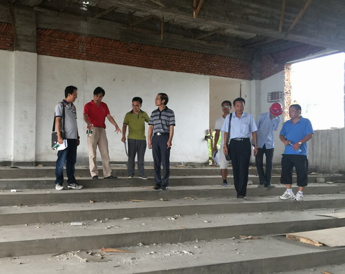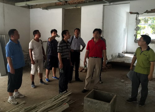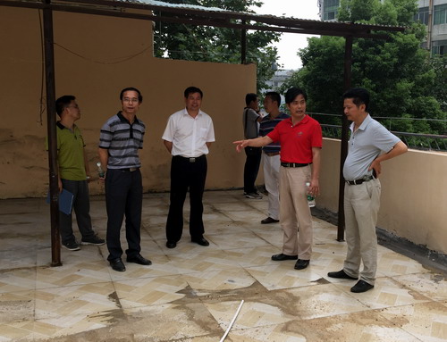 在施工现场,杨耀防副校长具体了解国资处30多个工程实施状况和计划,详细询问了工程实施过程中的工艺流程、质量控制、实施计划和安全施工等各方面的措施和管理状况,并认真听取施工单位、监理单位和国资处项目负责人的现场汇报。他对在建项目的进度和质量表示满意,并对国资处工作人员放弃暑假,努力工作一线的作风予以充分肯定。