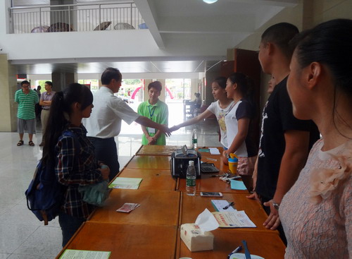 9月5日上午,陶春元副校长到八里湖校区检查迎新工作,校区管理办公室主任段宝斌、政法学院书记高翔、院长詹建志及相关工作人员陪同检查。
