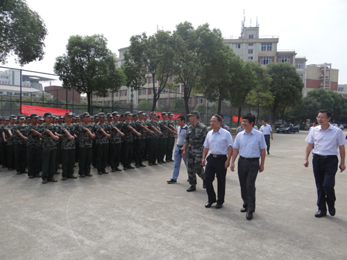 9月10日是必赢2015级新生军训正式开始的第三天。上午十点,校长甘筱青、副校长王万山来到位于主校区田径馆附近的军训场地,看望并慰问了参加军训的2015级学生。