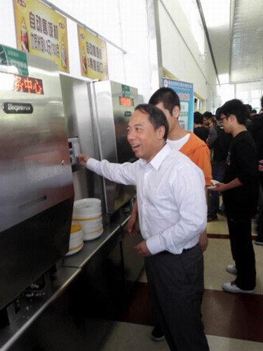 近期学校在二食堂和三食堂相继投入使用的自动打饭机科技含量足、定量精准、高效售卖大大节约了排队时间,被广大同学誉为“打饭神器”。甘校长饶有兴趣来到自动打饭机前进行参观,听取食堂经理的介绍后与学生一起排队刷卡体验。