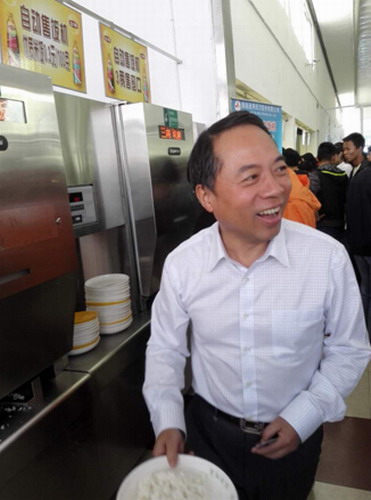 10月20日中午,甘校长来到主校区学生二食堂,深入高峰期就餐同学中间边查、边看、边问,校长重点关注学生午间高峰时段食堂供应是否充足,就餐秩序是否良好,菜品花色价位是否合理等。
