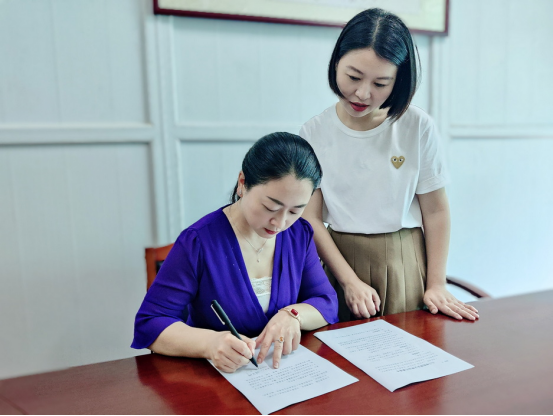 学报编辑部教师正在签署《承诺书》