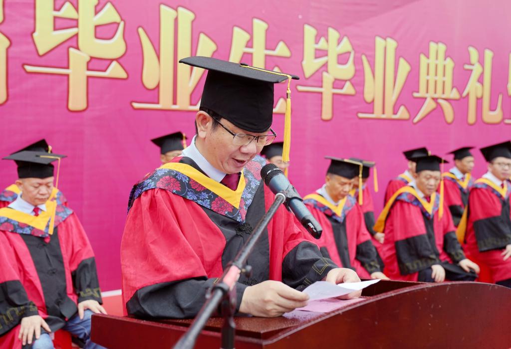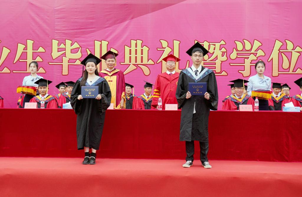 在学位授予仪式上,校党委书记赵伟、校长陈小林等校领导为毕业生代表颁发毕业证书,校学位评定委员会委员走到毕业生中间,为九院学子一一拨穗正冠,祝愿他们前程似锦、鹏程万里。