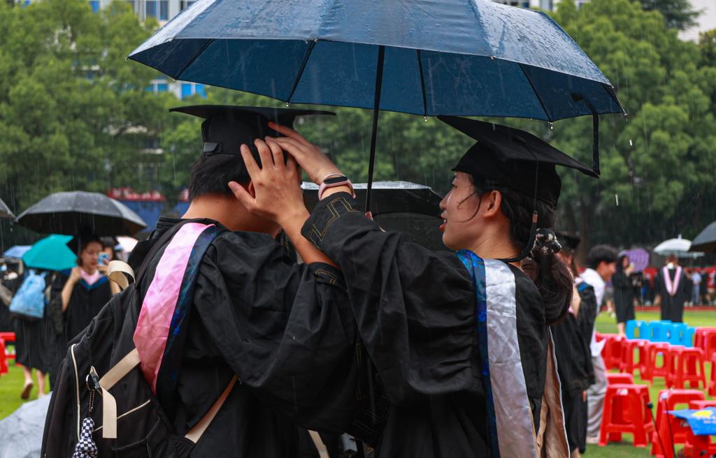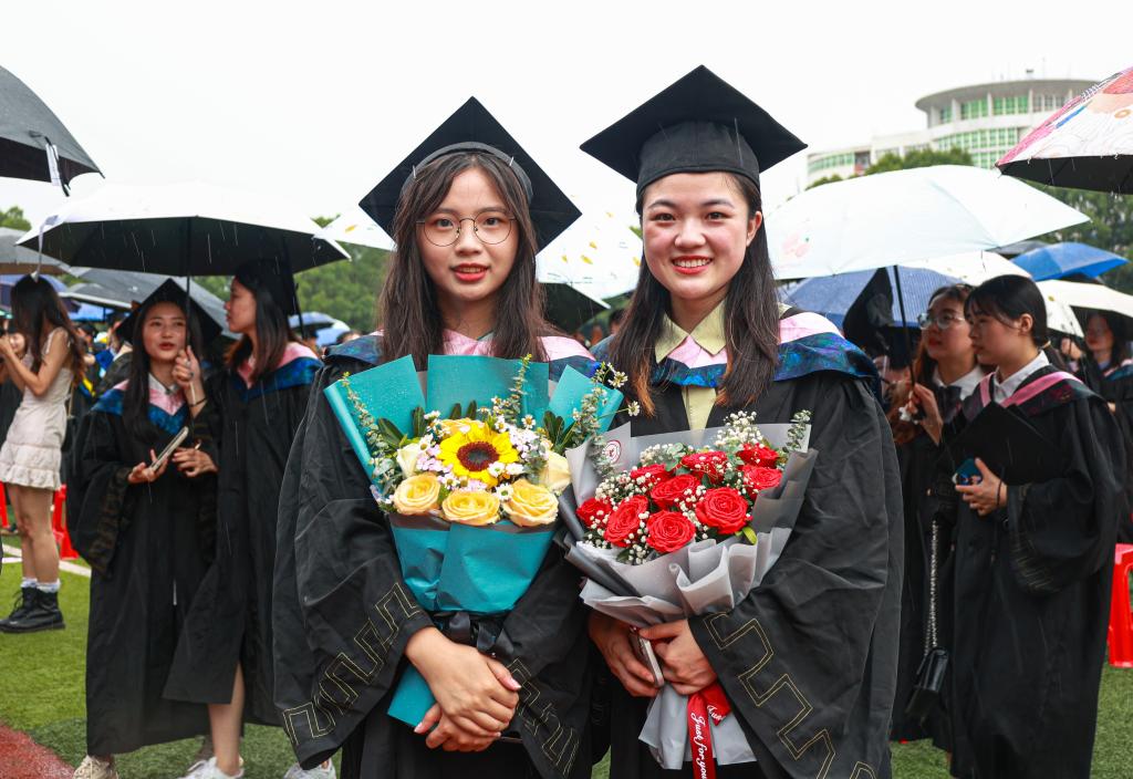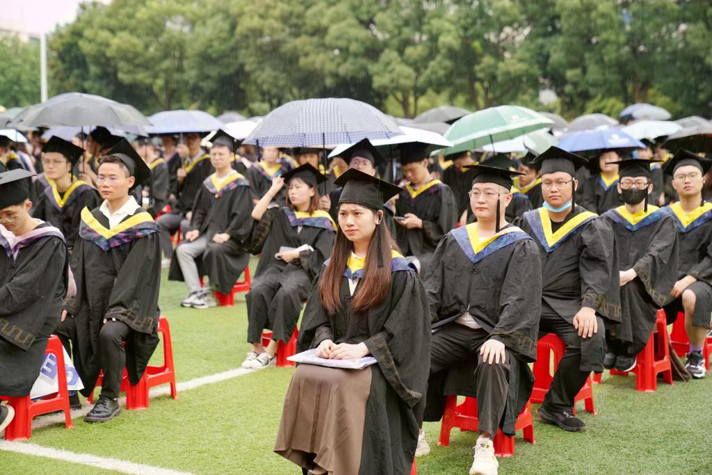 毕业典礼在2022届全体毕业生们欢呼声中结束,赵伟、陈小林等校领导、校学位评定委员会委员冒雨来到同学们中间,与他们合影、握手、话别。