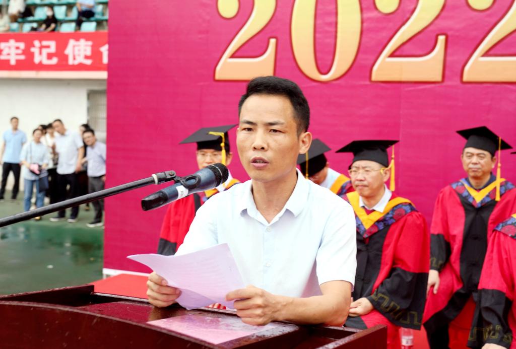 校长陈小林代表学校党政及全校师生员工,向圆满完成学业的2022届全体毕业生表示最热烈的祝贺!向为同学们成人成才付出辛勤劳动的全体教职员工表示最崇高的敬意!向始终关爱并支持同学们健康成长的各位家长表示最诚挚的谢意!他表示,作为新时代青年,同学们是国家的未来,是国家富强、民族复兴的中坚力量。在青春的赛道上奋力奔跑,才能最终奔赴美好的未来!同时要始终牢记党的教诲,立志民族复兴,不负韶华,不负时代,不负人民,在青春的赛道上奋力奔跑,争取跑出当代青年的最好成绩!