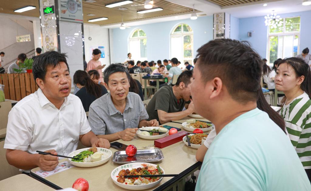 毕业典礼结束后,学校在主校区一食堂和三食堂、浔东校区食堂准备了定制午餐和毕业礼物,为2022届全体毕业生送别,让毕业学子再一次感受九院味道。赵伟、陈小林等校院领导分别来到学生三食堂和一食堂,与同学们共进午餐,一起回忆大学时光,畅想美好未来。