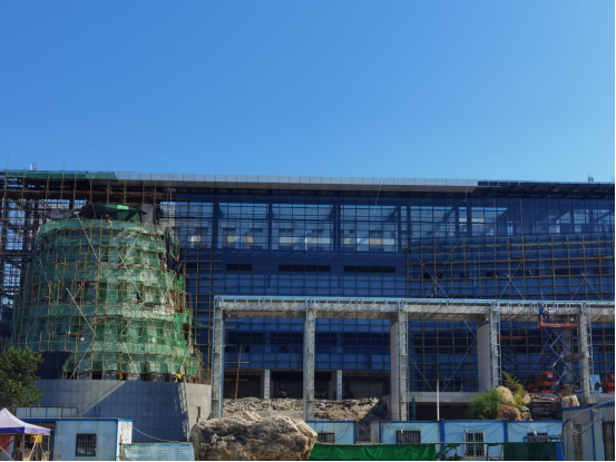 逸夫图书馆是为整合教育资源、改善教学综合办学条件的典型工程。该项目为5层框架结构,图书馆改造后总建筑面积约为19000平方米。目前逸夫图书馆改造项目主体钢架和玻璃幕墙已经完成,正在安装铝板。