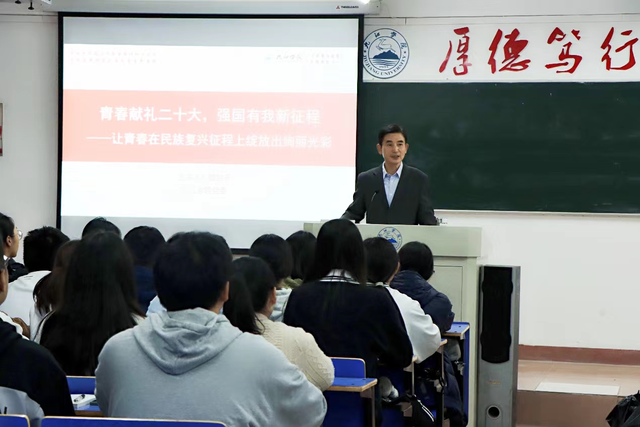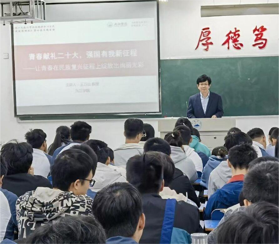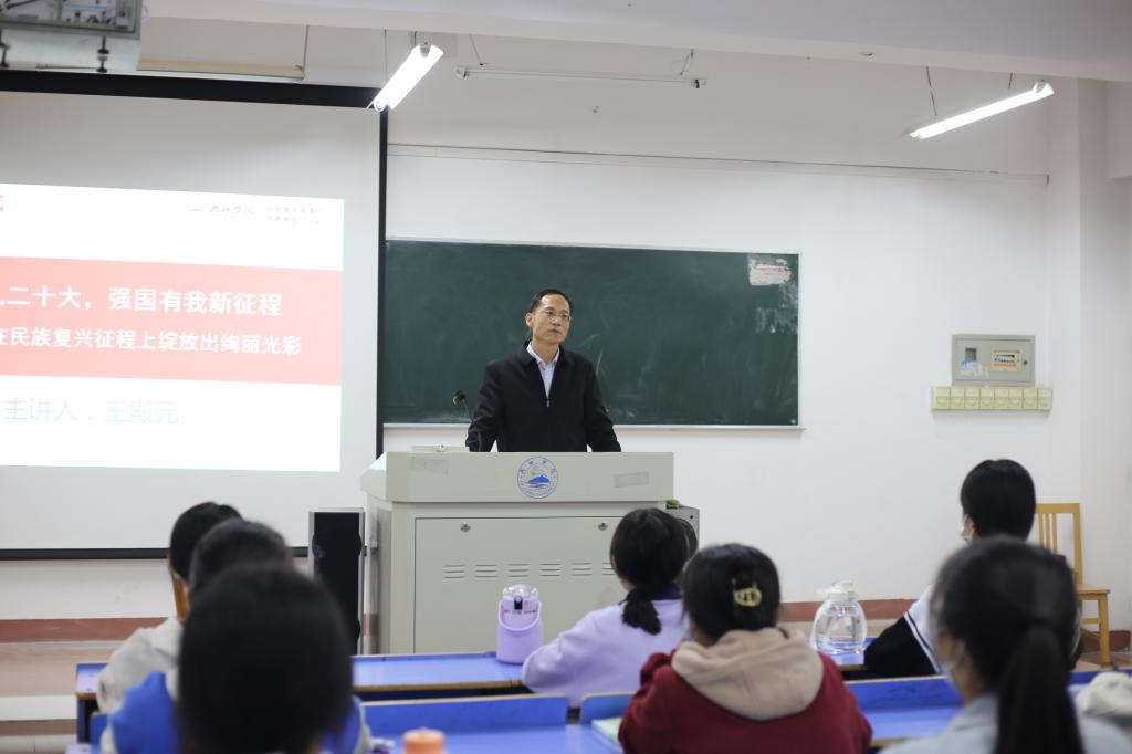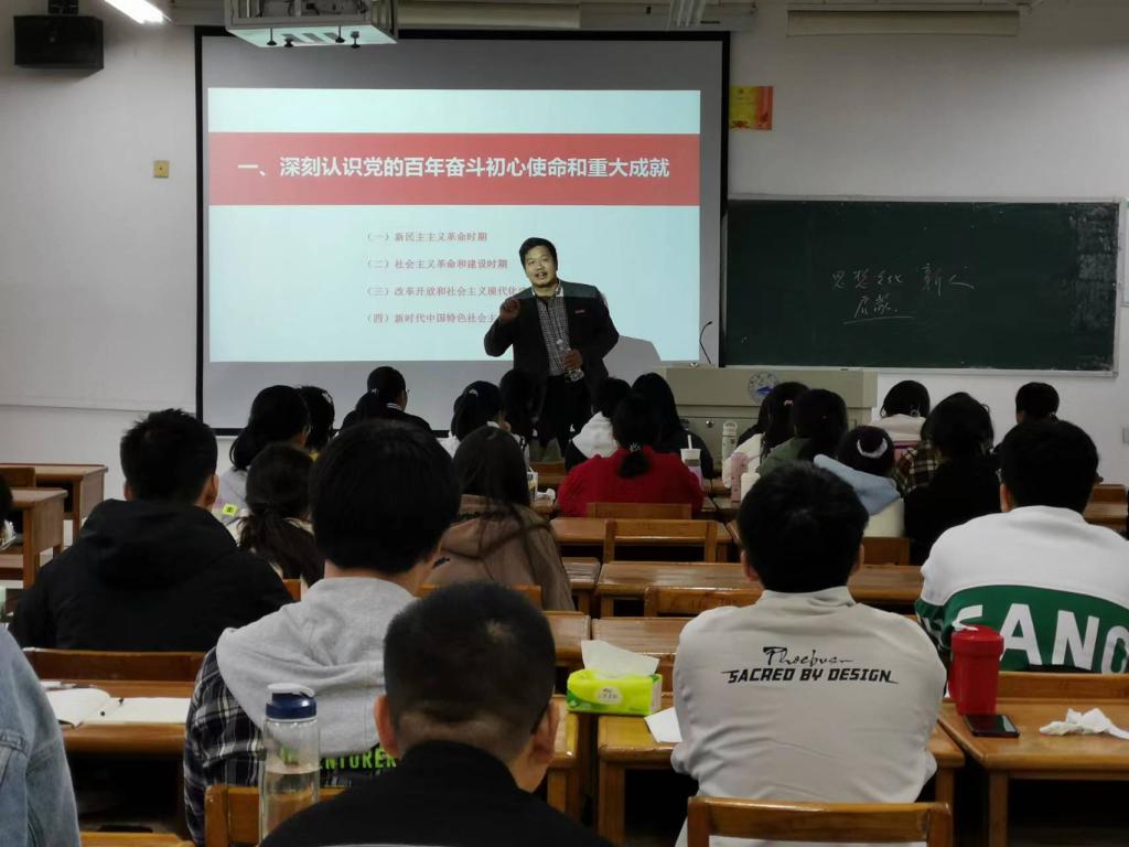 其他校领导也分别到所联系学院为学生授课,勉励学生关注时事政治,找准方向定位,书写青春华章。