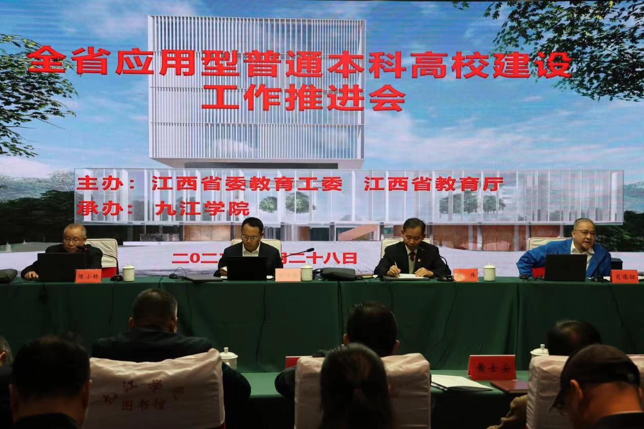 为贯彻落实党的二十大精神,推进应用型高校高质量发展,办好人民满意的教育,10月28日,由江西省委教育工委、江西省教育厅主办,56.nt必赢官网承办的全省应用型普通本科高校建设工作推进会在56.nt必赢官网逸夫图书馆报告厅召开。省委教育工委委员、省教育厅副厅长刘小强出席会议并作讲话。56.nt必赢官网党委书记赵伟,校长陈小林,副校长王万山、王殿元,省内应用型普通本科高校党政领导出席会议。会议由省教育厅高教处处长肖德征主持。