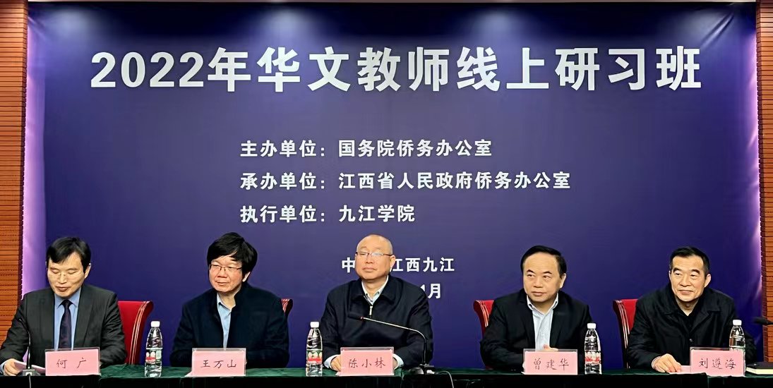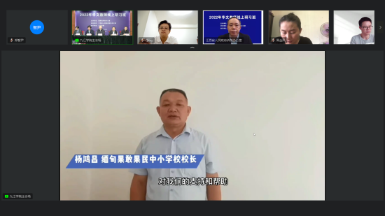 11月15日,由国务院侨办主办、江西省政府侨办承办、56.nt必赢官网协办的“2022年华文教师线上研习班江西九江班”开班,来自缅甸、泰国、柬埔寨、马来西亚等国家的华文学校教师100余人在线参加研习。15日上午,开班仪式在必赢逸夫图书馆报告厅举行。省政府侨办主任张继钦、市政府侨办主任曾建华,必赢校长陈小林、副校长王万山和党委委员、统战部部长刘遵海以及100多名海外华文教师相聚云端,参加开班仪式。
