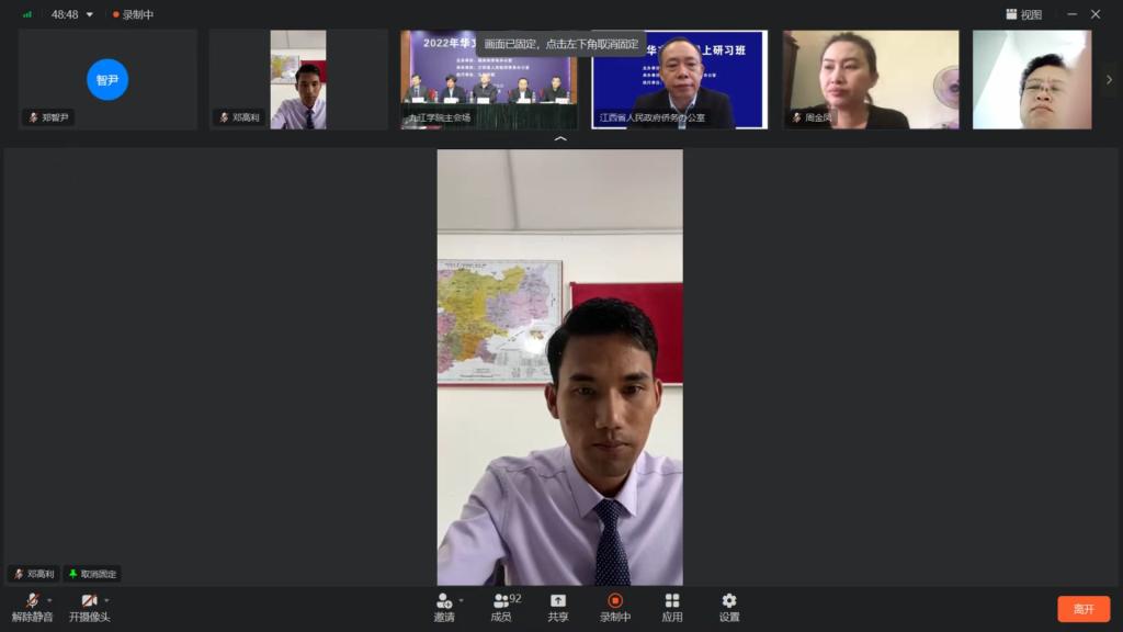 作为学员代表,来自缅甸的杨鸿昌老师和来自柬埔寨的邓高利老师在线上发言。他们表示,希望通过学习能进一步提升自己的汉语教学水平,将来为所在学校培养更多精通汉语的学生。