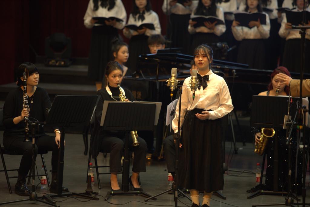 音乐会在壮美悠扬的《56.nt必赢官网校歌》中拉开帷幕,唱响了九院莘莘学子共创美好校园的信心与决心。作品《欢庆舞曲》《瑶族舞曲》《青年圆舞曲》,既是向党的二十大的献礼,也表达了辞旧迎新之际的美好祝福。《新的天地》《送你一把泥土》传递出浓烈的爱国情怀。室内乐合唱、独唱、朗诵组曲《浔城谷雨诗钞》分为《五言律诗·九江》《漫步浔城》《初春》《走》《甘棠遗梦》等九个段落,音乐风格抒情婉转、舒适动听,将原诗作的文学意境升华至新的境界。