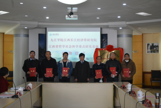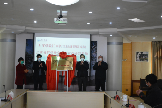 校科研处、江西长江经济带研究院、旅游与地理学院、管理学院、经济学院、资源与环境学院、法学院负责人,基地团队成员和相关专家学者参加揭牌仪式。