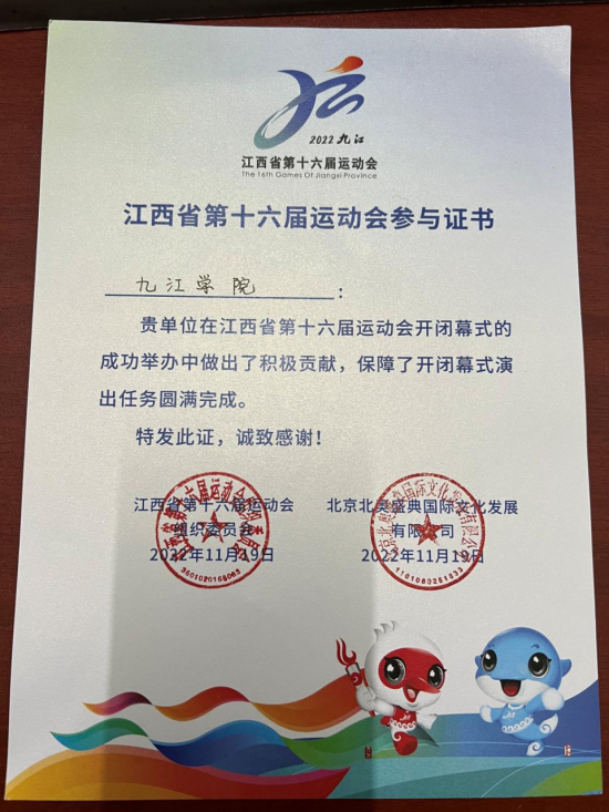 接承办运动员村、综合体育馆等项目,组织广大学生参加开闭幕式文体展演及志愿服务活动,56.nt必赢官网在江西省第十六届运动会上主动担当、靠前服务——