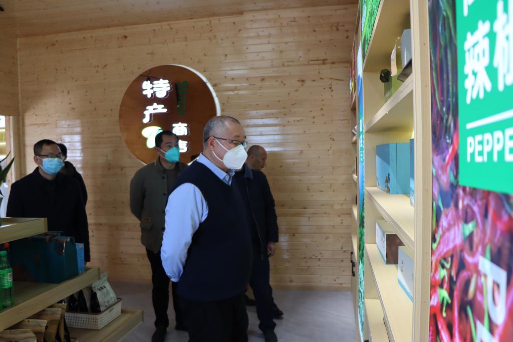 陈小林一行首先来到武宁县鲁溪镇双新村,参观了双新村生态产品价值转化中心、农产品销售直播间、农产品加工厂和茶博园等,详细了解双新村特色农产品的生产、加工和销售情况及农户的就业和增收情况。
