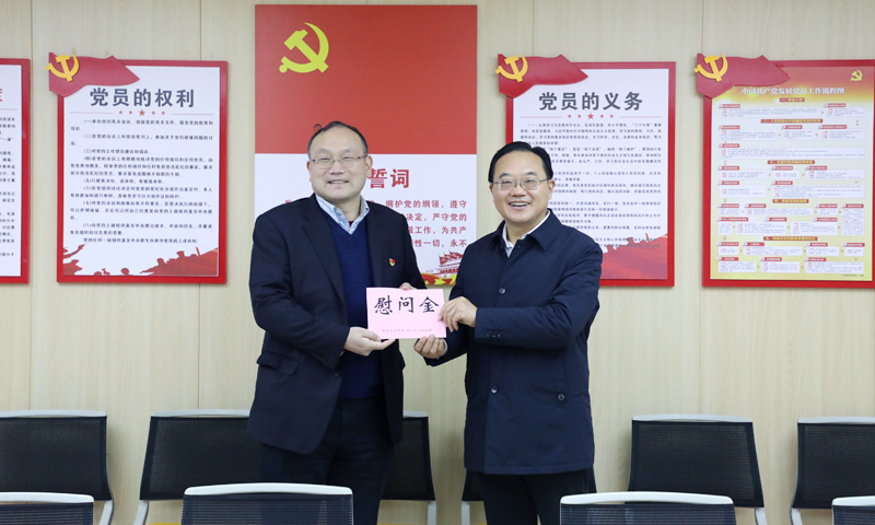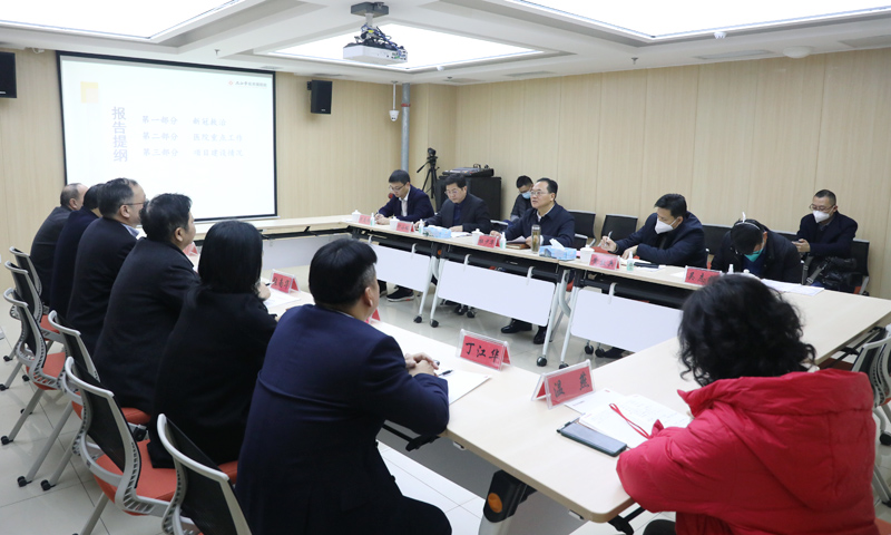 1月12日,副市长杜少华来56.nt必赢官网附属医院看望慰问联系专家殷小平博士,并调研医院疫情防控工作及江西省脑血管病区域医疗中心项目建设工作。市政府副秘书长黄效兵、市卫健委党委书记宁小球等陪同,附属医院班子成员、相关部门负责人参加会议和汇报工作。
