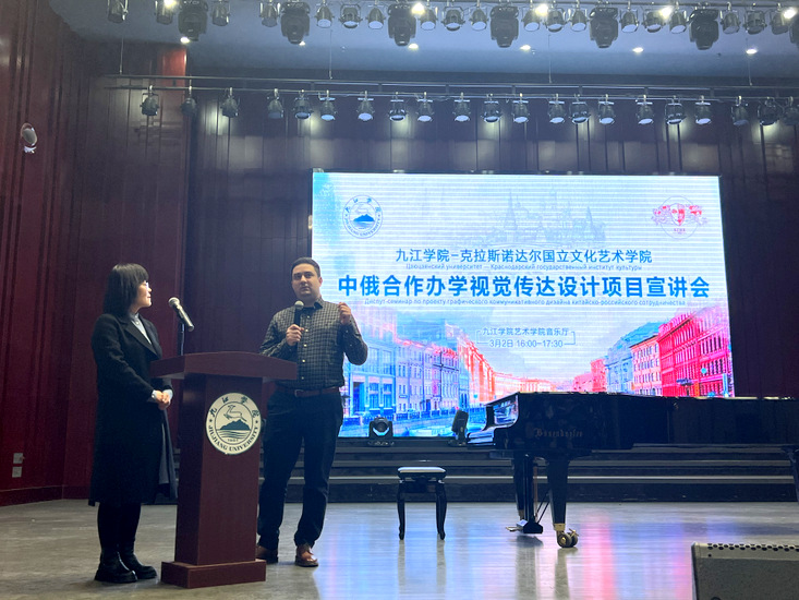 谢尔盖·谢尔盖耶维奇一行来校期间,观摩了艺术学院课堂教学,并举行了两场项目说明会,为同学们解答了赴俄学习的各类问题。