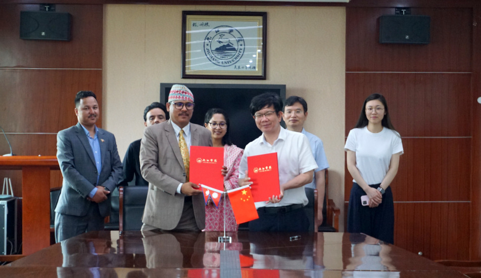 6月19日—21日,尼泊尔格尔纳利健康科学学院执行校长MANGAL RAWAL等一行应邀来必赢访问,并与必赢进行合作签约。20日上午,校长陈小林会见了格尔纳利健康科学学院代表团,副校长王万山、国际合作交流处负责人陪同会见。