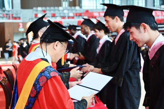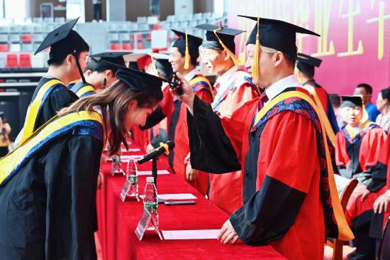 在学位授予仪式上,校长陈小林、副校长王万山等校领导为毕业生代表颁发毕业证书,各二级学院院长走到毕业生中间,为2023届九院毕业生拨穗正冠、握手拥抱,祝愿他们前程似锦、鹏程万里。
