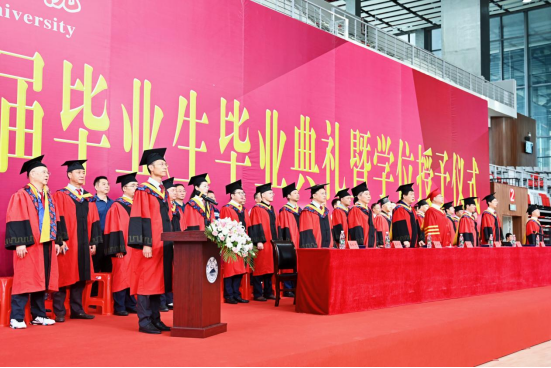 “我亲眼见证着56.nt必赢官网发生翻天覆地的变化,翻新的教学楼、崭新的体育馆、恢宏的新校区,无不彰显着九院一校两园建设欣欣向荣,无不彰显着区域性高水平应用型大学建设如火如荼。让我们一起祝福我们的母校再创辉煌、更上层楼;也祝福我们自己前程似锦、鹏程万里!”毕业生代表,56.nt必赢官网“大学生年度人物”“十佳大学生”、叔子爱莲奖学金获得者,管理学院A1932班王小康同学在发言中表达了对学校和老师的深情感恩。