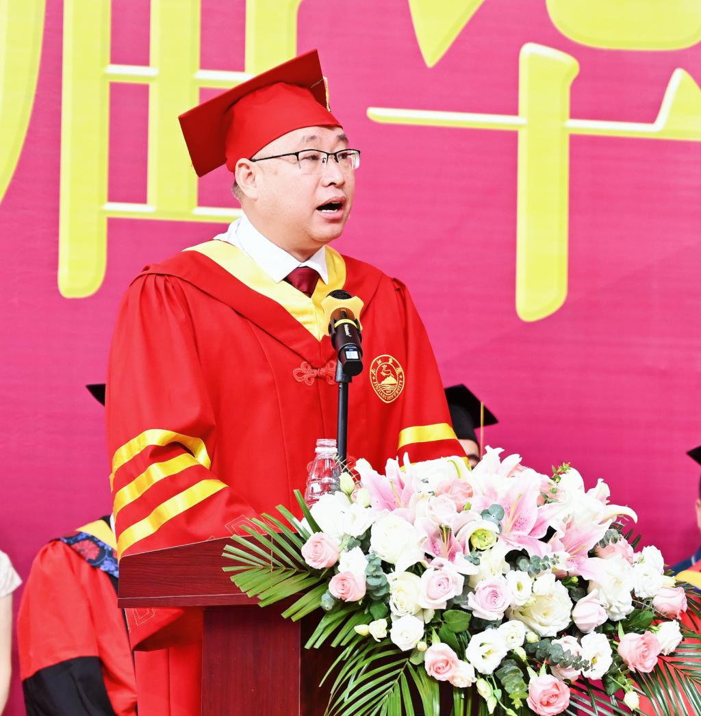 陈小林代表学校党政及全校师生员工,向圆满完成学业的2023届全体毕业生表示最热烈的祝贺,向为同学们成人成才付出辛勤劳动的全体教职员工表示最崇高的敬意,向始终关爱并支持同学们健康成长的各位家长表示最诚挚的谢意!他说,大学是青春永恒的记忆,在这宝贵的几年时间里,你们负笈求是,追逐梦想,收获了青春也收获了成长,美丽的校园见证了你们最美好的年华,你们用火热的青春留下了绚丽的华章。生逢盛世,奋斗其时,青年是国家的未来,是民族的希望。中国式现代化的伟大征程,是新时代青年格物致知、大有作为的绝佳时机!