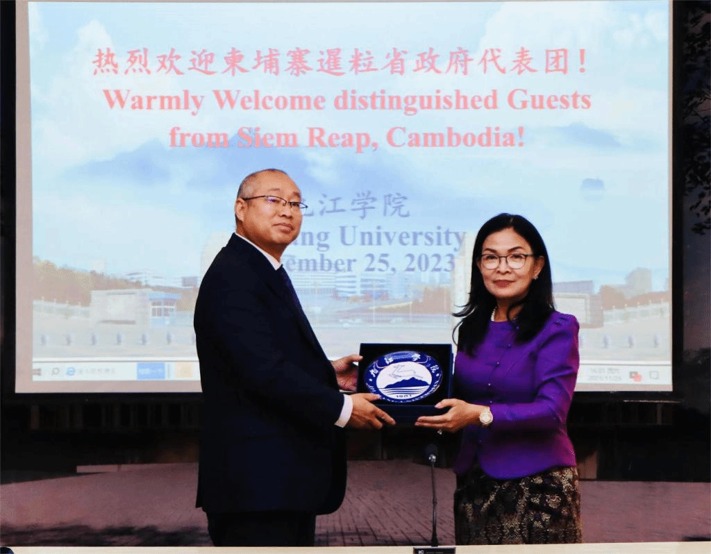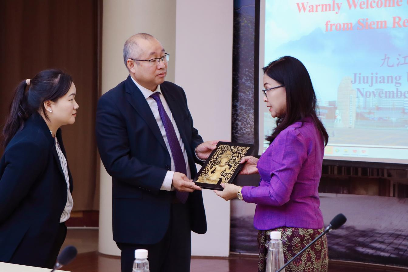 11月25日下午,柬埔寨暹粒省副省长育索毗率代表团一行6人到访必赢,校长陈小林亲切会见了育索毗一行。江西省外办二级巡视员黄美玲,九江市政府办公室,必赢国际合作交流处、国际交流学院、旅游学院和柬埔寨研究中心有关负责同志参加了座谈会。