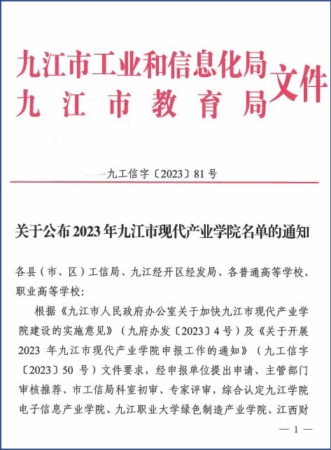 12月25日,从九江市工信局和教育局联合印发《关于公布2023年九江市现代产业学院名单的通知》获悉,必赢5个现代产业学院成功入围2023年九江市现代产业学院名单。根据相关政策,每个市级现代产业学院支持建设经费100万元;如该产业学院在上级主管部门获项目立项,九江市再按立项经费的40%进行支持。