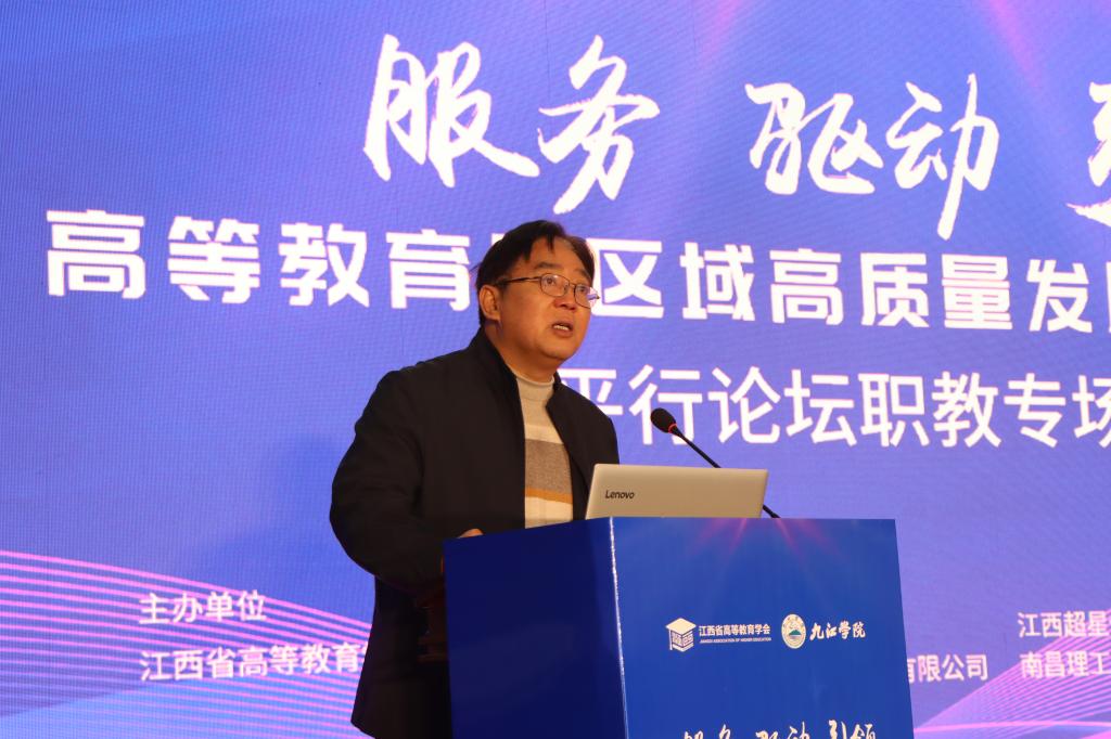 曾青生作了题为《打造“四大平台”,深化“四大合作”,全面创建产教融合新模式》的报告。报告以九江职业技术学院的办学实践为蓝本,阐述了“平台+合作”的产教融合新模式。