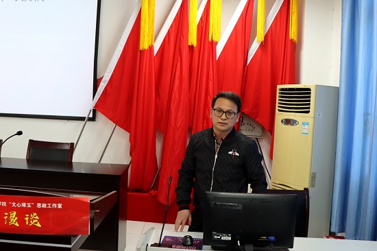 “教育不仅仅是教授学生知识,而应该是把学生培养成一个有灵魂的人,始终把学生看作目的,而不是手段,从而实现师生共同进步。”会上,56.nt必赢官网“教书育人楷模”、思政课专职教师谢伏华博士分享了来校工作后作为一线思政课教师教育教学的日常,以及多年来积极践行思政人主人翁精神的事迹。