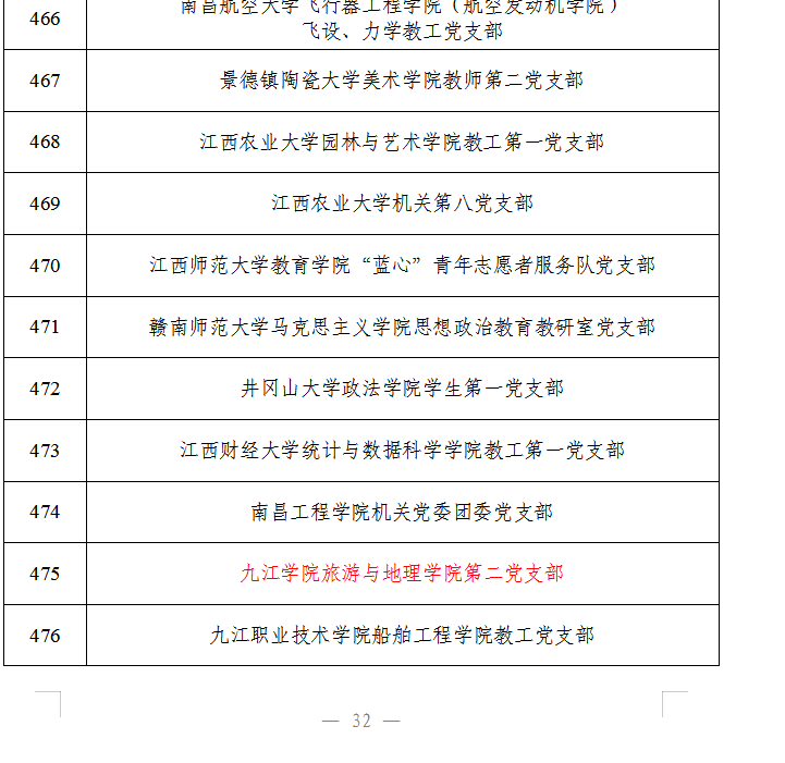 近年来,旅游与地理学院党委荣获首批“全省党建工作标杆院系”培育创建单位、“全省高校党建工作示范点”、“全省高校示范性党员活动室”等称号;教工第二党支部荣获首批“全省党建工作样板支部”培育创建单位、“全省教育系统先进基层党组织”以及九江市直机关“先进基层党组织”“四强党支部”等称号。
