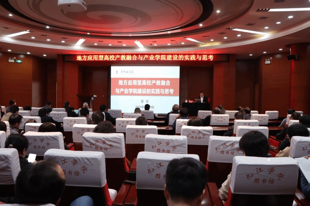 常州工学院党院办副主任冯英华,必赢人事处、教务处、科研处、发规处、创新创业学院主要负责人,各二级学院院长、教学副院长、教研科长,各现代产业学院院长、副院长及骨干教师,教务处、创新创业学院副科及以上干部等100余人参加了报告会。