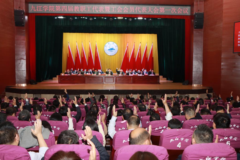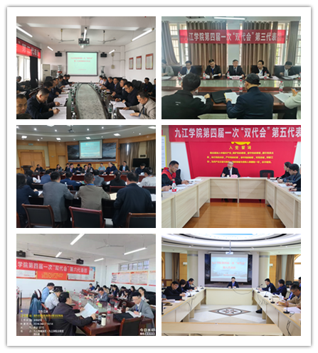 九江市教育工会主席周庆文代表上级工会致辞。校工会主席韩琨代表学校第三届工会委员会作《工会工作报告》。工会副主席谈有俭作《提案工作报告》。人事处处长吴登丰就有关职称评审、岗位聘任制度作说明。第一次全体会议结束后,会议代表分成9个代表团,分别围绕相关报告和制度文件民主协商讨论,为学校事业发展提出了许多宝贵的意见建议。大会主席团会议充分听取了各代表团讨论审议情况。