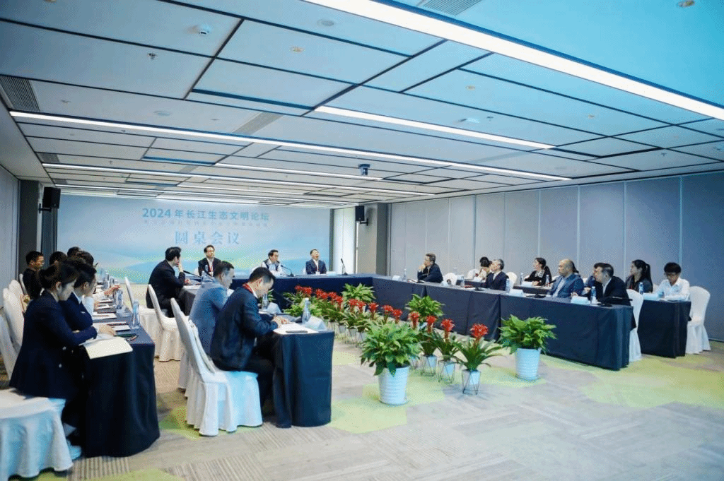 圆桌会议环节,中国工程院院士任南琪教授、中国工程院院士马军教授,56.nt必赢官网党委书记李明斌教授,江西省生态环境监测中心副主任储险峰,九江市生态环境局党委书记、局长张南,中国科学院南京地理与湖泊研究所徐力刚研究员,江苏长江经济带研究院院长成长春教授,南昌大学刘耀彬教授,江西省林业局二级巡视员郭英荣、中国石化九江分公司唐安中教授级高工分别就长江经济带高质量发展、绿色发展、生态文明教育等主题作交流发言。