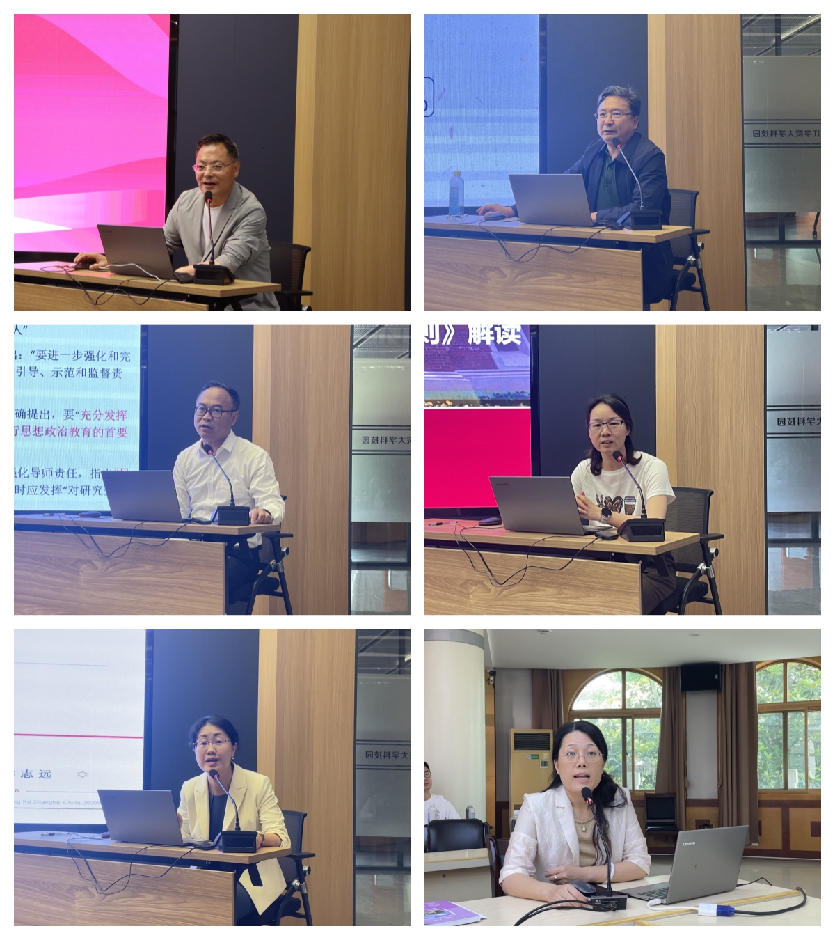 在随后两天的培训会上,担纲主讲的上海理工大学专家学者分别就新时代我国研究生教育的新使命、上海理工大学研究生教育基本情况、研究生导师的责任与使命、师德师风与导师行为雅正、研究生心理健康教育、研究生培养工作、研究生学位授予工作、学院导师工作介绍以及研究生培养经验等主题开展了讲座。
