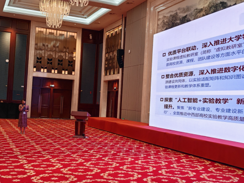 李金环作了题为《优质平台联动,深入推进大学物理实验数字化教学西部行》的报告。报告指出聚焦“新专业建设、专业建设新要求、交叉融合再融合”,通过大学物理实验教学“西部行”,全面推动中西部高校实验教学高质量发展和拔尖人才实践培育的深层次变革。