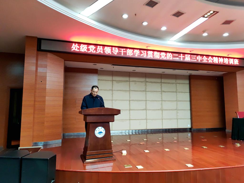 11月21日,培训班举行开班式,校党委书记李明斌作动员讲话并讲授“第一课”,校党委委员、副校长王殿元主持。李明斌在讲话中指出,党的二十届三中全会是在全面推进中国式现代化的关键时期召开的重要会议,全会通过的《中共中央关于进一步全面深化改革 推进中国式现代化的决定》,总结了改革开放特别是新时代全面深化改革的成功经验,科学谋划了推进中国式现代化的战略部署,是指导新征程上深化改革的重要纲领性文件。全校各级党组织和党员干部要切实把思想和行动统一到全会精神上来,推动学习成果转化为推动学校发展的实际成效。