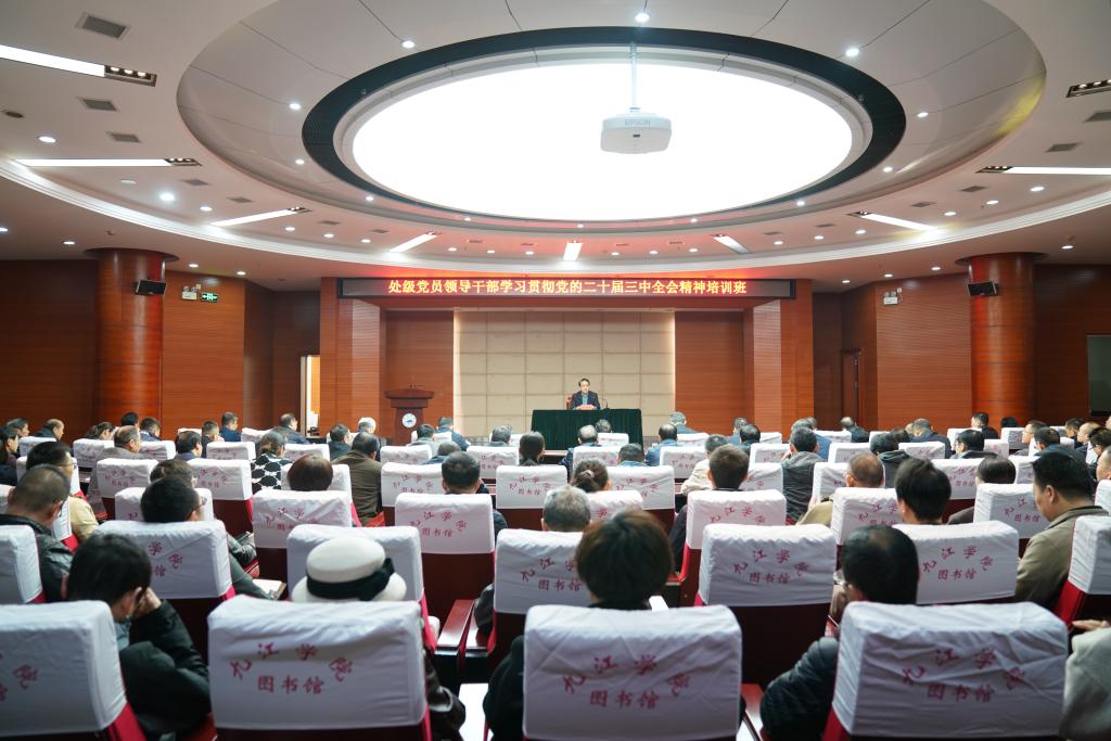 李明斌以《深入学习贯彻党的二十届三中全会精神以改革创新精神引领学校高质量发展》为题作专题辅导报告。他从三个方面进行了深入阐述:一是提高政治站位,切实把思想和行动统一到全会精神上来;二是强化使命担当,以改革创新精神引领学校高质量发展;三是抓好贯彻落实,加快建设特色鲜明高水平应用型大学。他强调,要深刻领会全会精神的重大意义,准确把握深化改革的目标、原则和重点任务;要紧扣学校发展战略,聚焦“3353战略”实施,推动学校第二次党代会精神落地见效;要以高度的责任感和使命感推动改革落实,为建设特色鲜明高水平应用型大学而不懈奋斗。